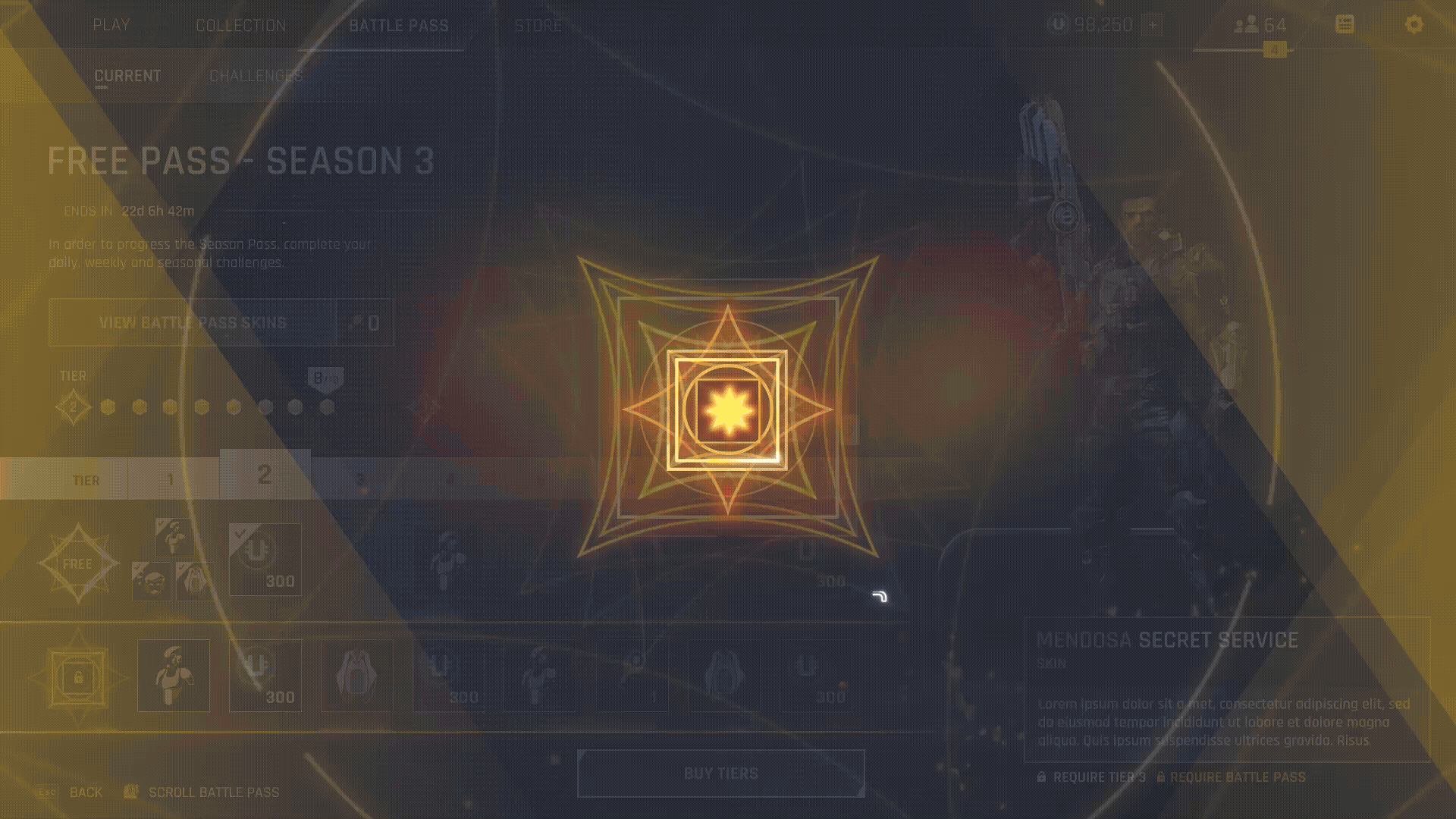 - Tier Unlock Sequences: Created high-impact visual effects for unlocking rare items, such as the "Mendoza Secret Service" skin, featuring shimmering particle effects and dynamic character reveals.