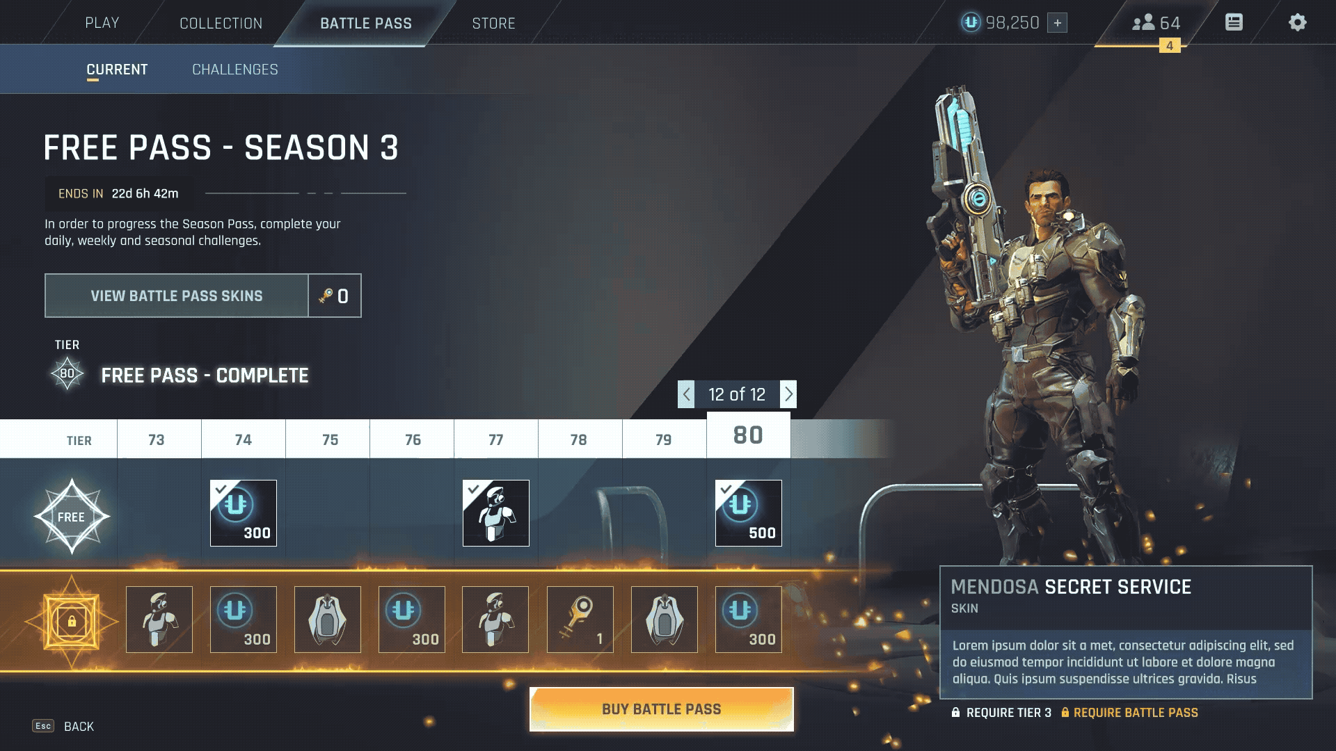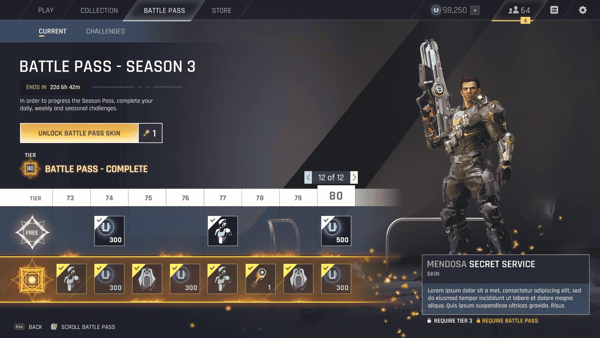 - Battle Pass Progression: Designed the motion for the "Free Pass" and "Premium Battle Pass" systems, including the dramatic "Completed" animation sequence that rewards players with a sense of accomplishment.