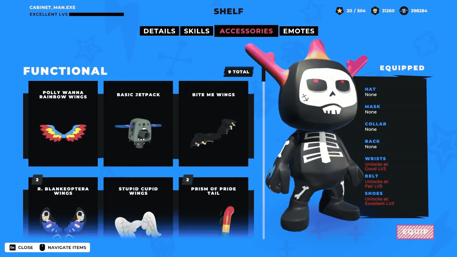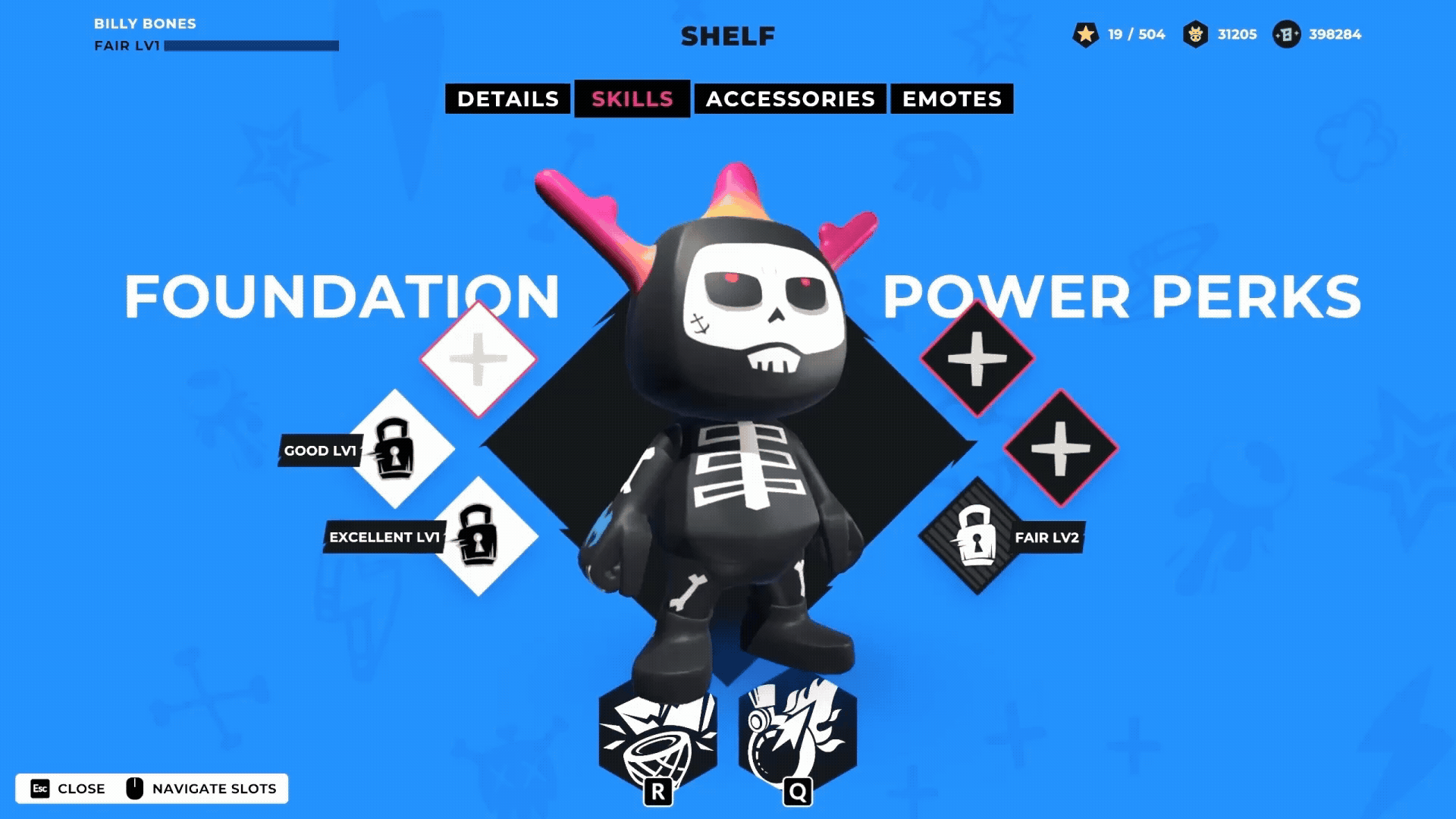 - The "Shelf" Experience: Crafted immersive UI animations for character inspection, allowing players to rotate and view their "Blankos" (like Billy Bones) while exploring detailed skills and accessories.
