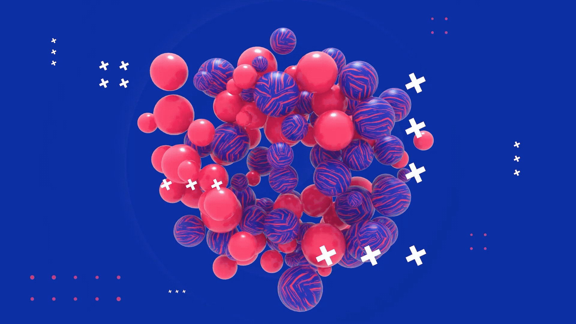 Drawing from your expertise in blending art and technology, this pack utilizes a bold palette of neon pinks and deep blues, paired with abstract 3D elements like textured spheres and kinetic typography.