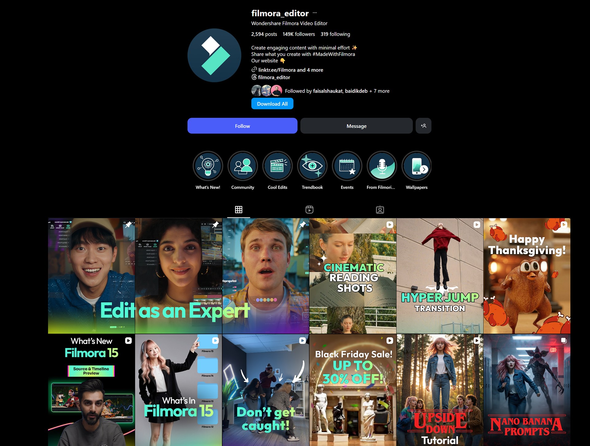 In this project, I also led the adaptation and cutdowns for Filmora's Social Media contents. Besides, I was consulting the design guideline for our social medial channels