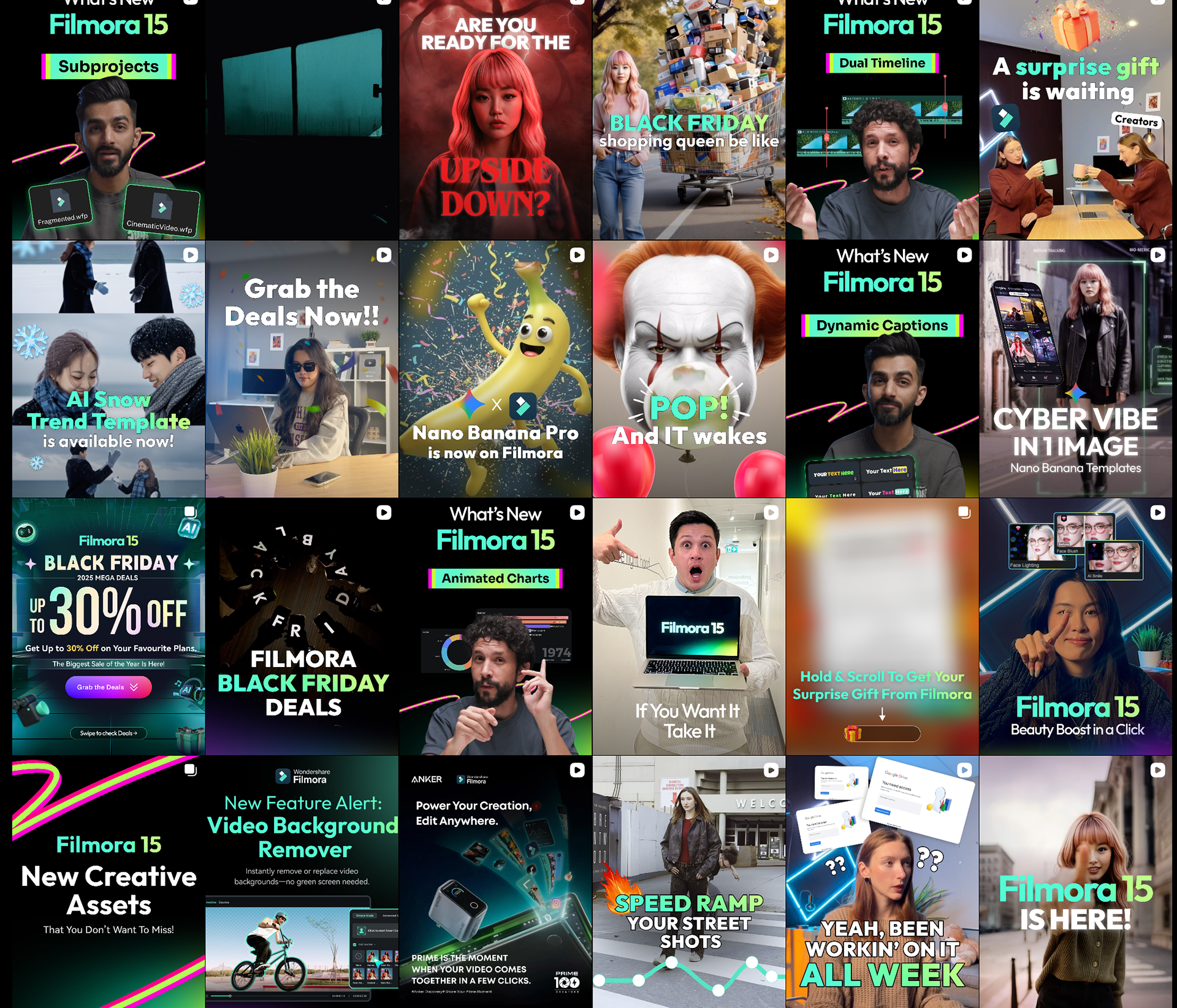 The work resulted in a cohesive set of localized and short-form brand assets derived from the Filmora V15 hero film—supporting global rollout while keeping visual quality, timing, and brand expression consistent across all executions.