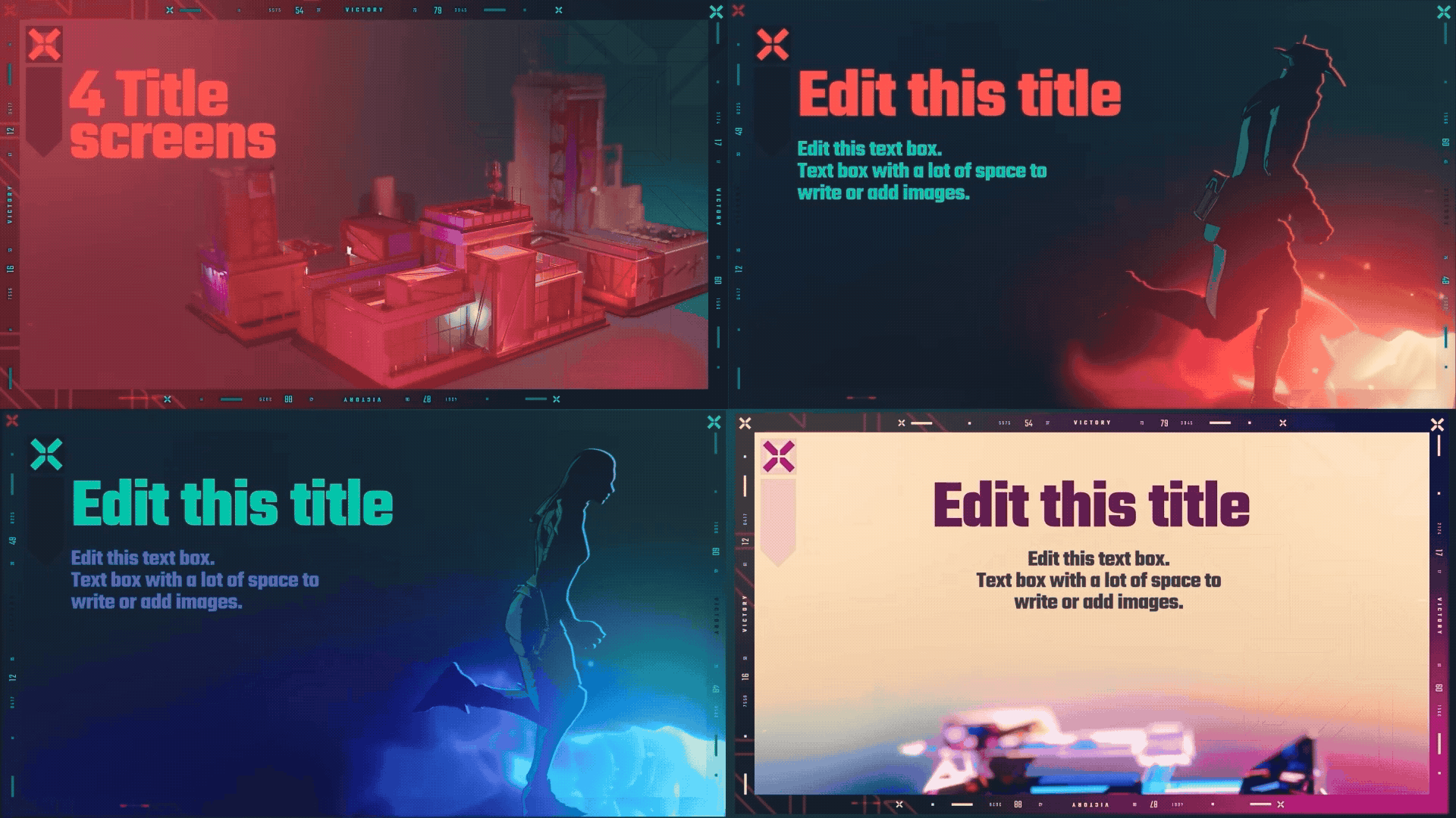 - 4 Dynamic Title Screens: Polished layouts for presenting game titles, event names, or "Victory/Defeat" screens with a high-impact aesthetic.